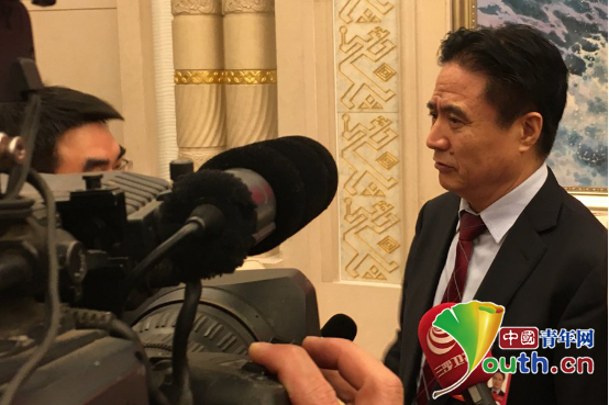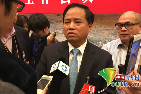 3月7日上午,海南代表团开放日活动结束后,海南省省长刘赐贵接受记者采访。中国青年网记者 李正穹 摄