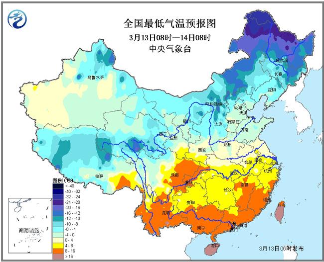 13日08时至14日08时,新疆西南部、青藏高原中南部、东北地区东南部等地有小到中雪或雨夹雪,其中,西藏西南部、新疆西南部局部有大雪或暴雪(10~15毫米);西藏东南部、云南西北部、西南地区东南部、黄淮东部、江南大部、华南及台湾岛等地有小到中雨,局地有大雨。新疆南疆盆地有扬沙或浮尘天气。新疆东部、内蒙古中部、华北西部等地有4~5级偏北风。东海东北部和南部、台湾海峡将有7~8级、阵风9级的大风。