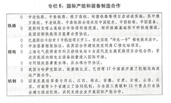 二是扩大国际产能和装备制造合作。围绕重点产业、重点国别,建立产能合作项目库。建立健全省区、牵头企业与重点国别对接机制,完善重大风险管理机制。加快推进双边产能合作机制建设,充分利用多边平台务实推进产能合作,积极与发达国家开展第三方市场产能合作,推动中国技术、中国装备、中国标准、中国服务走出去。完善财政金融支持政策,设立人民币海外合作基金、多双边产能合作基金,推动银企合作。2016年非金融类境外直接投资预期约1300亿美元,增长10%左右。