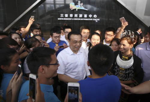 22日下午,李克强来到三亚市民游客中心考察海南国际旅游岛建设及服务创新等情况。