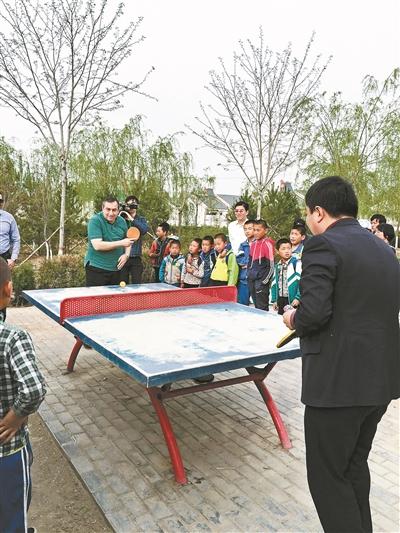埃及前总理伊萨姆·沙拉夫在和顺新村与村民打乒乓球 供图/中联部