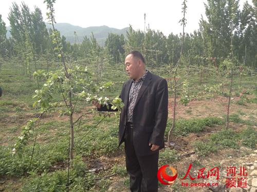 图为河北省保定市易县牛岗乡台底村党支部书记牛全江在查看苹果树长势。孙逸桦 摄