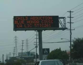 ▲美国交通系统在路边的电子显示器上打出的儿童被绑架的警报