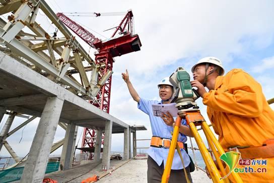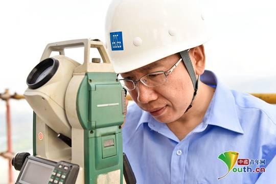 超高层建筑施工中,解决楼层自重导致的沉降问题是很重要的技术难点,周予启除了正常的技术交底外,总会亲自检视测量结果。本人供图