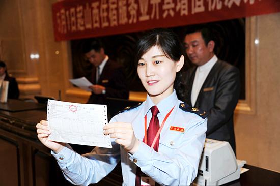 【山西】5月1日凌晨0时01分,太原市湖滨国际大酒店开出山西省住宿业第一张增值税专用发票,票面金额830元,税额为46.98元。山西省政府领导现场见证了首张发票的开具,标志着全面营改增试点在我省顺利落地。