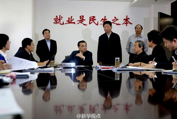 李克强6日考察人力资源社会保障部,与正在会商农民工就业形势的工作人员展开讨论。有关负责人介绍一季度农民工就业形势总体平稳但仍存在隐忧。总理为他们“支招”:加大服务业吸纳农民工就业能力,加快农民工就近就地创业就业,促进他们就业的产业转型和空间转型。
