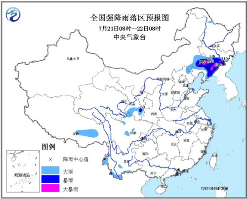 参与互动 中央气象台7月21日06时发布暴雨蓝色预警: