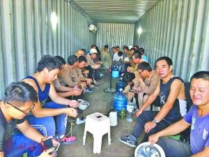 中企员工躲在集装箱内。(苏俊杰翻拍)