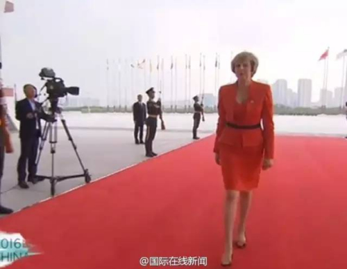 因为做事雷厉风行,新上任的英国首相被众多媒体评价为“英国新铁娘子”。在出席G20峰会的开幕式上,特蕾莎梅的一身“中国红”分外亮眼!
