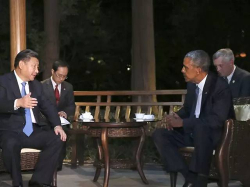 9月3日晚,习近平在杭州西湖国宾馆与奥巴马交谈。