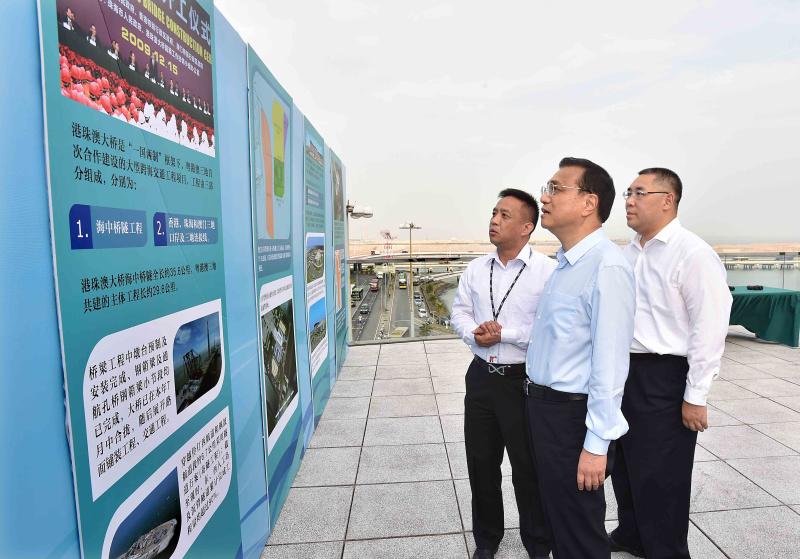 李克强总理11日在澳门视察建设中的港珠澳大桥。该桥总长55公里,预计2017年底竣工,为世界最长跨海大桥。2009年,时任国务院副总理的李克强在珠海主持大桥动工仪式,并眺望澳门。如今首次踏足澳门,他专程前往视察建设进度。大桥建成后,港澳将与内地更深融合。