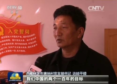 西藏林芝市唐地村党支部书记达娃平措:一个国家和一个政党,领导核心是至关重要的,我们有百倍的信心,以习近平同志为核心的党中央领导下,我们中国的两个一百年的目标,实现中华民族伟大复兴的目标越来越近。
