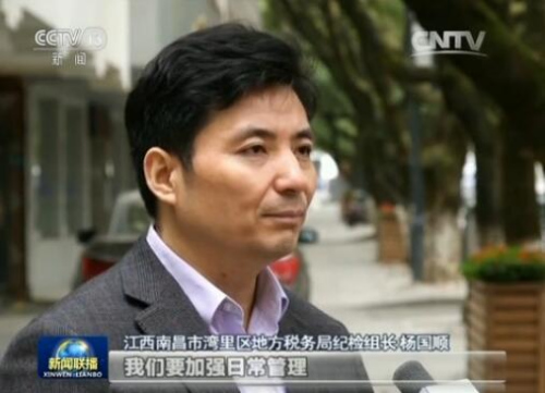 江西省南昌市湾里区地方税务局纪检组长杨国顺:作为我们基层的纪检干部,我们要加强日常管理,把纪律挺在前面,加强对干部的事前监督,事中监督,既保证他们不踩红线,不越红线,又要保证他们的工作积极性。