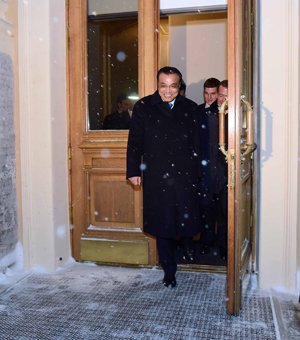 两国总理从中午一点开始第一场活动,待全部活动结束时天已全黑。梅德韦杰夫一路送李克强到大门外时,圣彼得堡飘起漫天大雪,地面也铺满厚厚的积雪。两位“老友”在风雪夜话别。