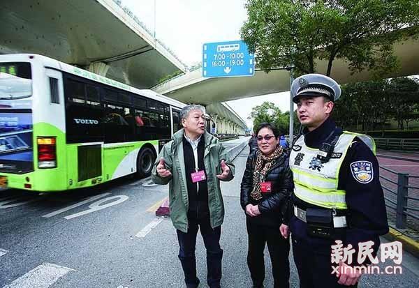 “我们这次提交了一份‘关于合理设置和使用公交专用道的建议’的提案,今天来就是想了解一下公交专用道使用能不能更加合理、设置更加科学的问题,同时完善提案的内容。”凤懋伦委员向正在路口执勤指挥交通的徐汇交警周健发问,周健结合工作实际和该公交专用道的使用运行,向两位政协委员作了详细介绍。(新民晚报记者 张龙 江跃中 方翔 摄影报道)