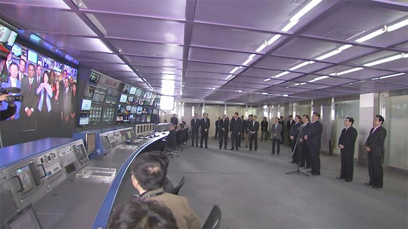 在中央电视台,习近平通过视频连线中央电视台北美分台负责人,询问他们在外工作情况,希望他们传播中国文化,讲好中国故事。