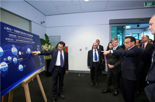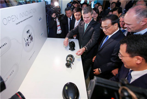 克强总理在最新科研成果展示图前驻足寄语:希望两国进一步发挥互补优势,强强联合,研发出具有世界领先水平的产品。