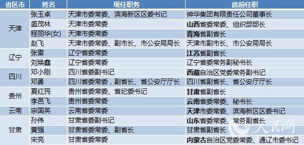 11省区市调整省级党委常委 9人异地交流任职(表)