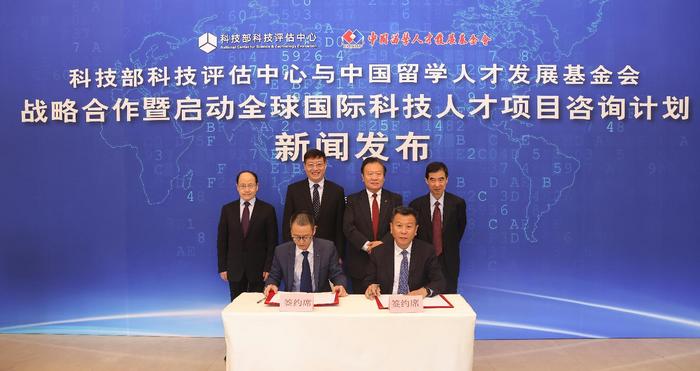 活动现场,科技部科技评估中心与中国留学人才发展基金会签署战略合作协议,双方将充分发挥各自优势,在科技项目评估、人才评估、国际合作等方面开展合作,启动全球国际科技人才项目咨询计划,收集海外高层次人才信息,共同建立和完善国际创新人才数据库,积极主动融入全球创新网络,共同挖掘海外优秀科技人才项目成果,促进海外高层次人才项目成果转化。