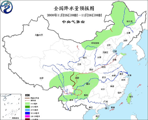 2008年11月25日8时—11月26日8时全国降水量预报图