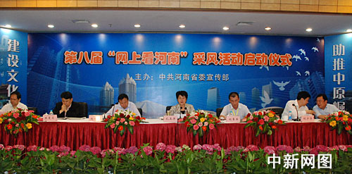 中新网5月25日电 5月25日,以“建设文化强省,助推中原崛起”为主题的第八届“网上看河南”采风活动在河南省会郑州启动。”来自50多家中央和地方重点新闻网站及部分知名商业网站的负责人和采编人员组成两队分别赶赴南、北两线进行采风,南线采访平顶山、许昌、商丘、开封4市,北线采访洛阳、焦作、鹤壁、安阳4市。