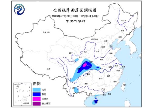 预计,今天夜间到明天白天,甘肃东南部、四川中东部、陕西南部、湖北西部、重庆北部、云南东南部、广东西南部、海南等地有大雨或暴雨,其中,四川盆地北部和陕西西南部的局部地区有大暴雨。