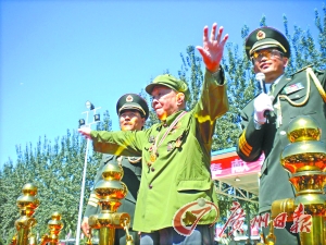 这位“演奏国歌第一人”还特意穿上了60年前开国大典时的军装,并再次指挥中国人民解放军联合军乐团奏响了《中华人民共和国国歌》。