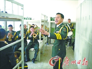 12日上午8时许,联合军乐团四大队副政委段亨明就把来自武警广东省总队军乐团的31位军乐团乐手集中到一起,抓紧时间再练习广东音乐《迎宾曲》的演奏。