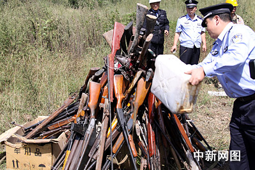 为给国庆营造平安和谐的社会环境,平顶山市公安局近期开展了集中收缴非法枪支弹药、爆炸物品统一行动,共收缴了609支民用枪支,以及内保、押运单位淘汰的60支军用枪支。