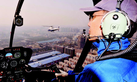 自8月底起至国庆节期间,河南郑州警方在全市范围内开展声势浩大的“绿城守护”行动,郑州市公安局空警大队的三架警用直升机每天轮番编队在市区重点地域上空执行国庆安保空巡勤务,实施空地联勤,形成全覆盖、无缝隙的立体防控网络。