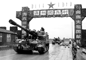 10月4日,履带式自行加榴炮离开通州阅兵村,前往火车站。通讯员 李实 摄