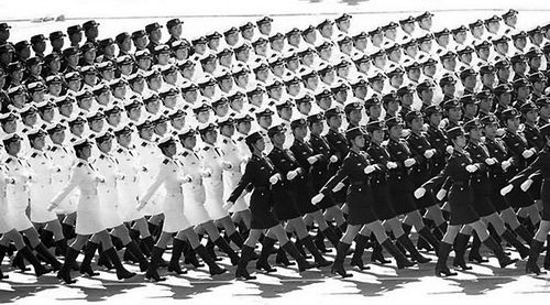 当三军女兵方队迈着矫健的步伐通过天安门广场时,家里的亲戚们沸腾了,大家一刻不离地注视着屏幕,试图在方队中找到蓝小练。