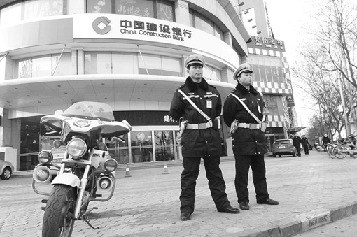 从即日起,河南省郑州市公安局出动特巡警对全市600多个金融网点实施跨立守护,确保市民存取款的安全。