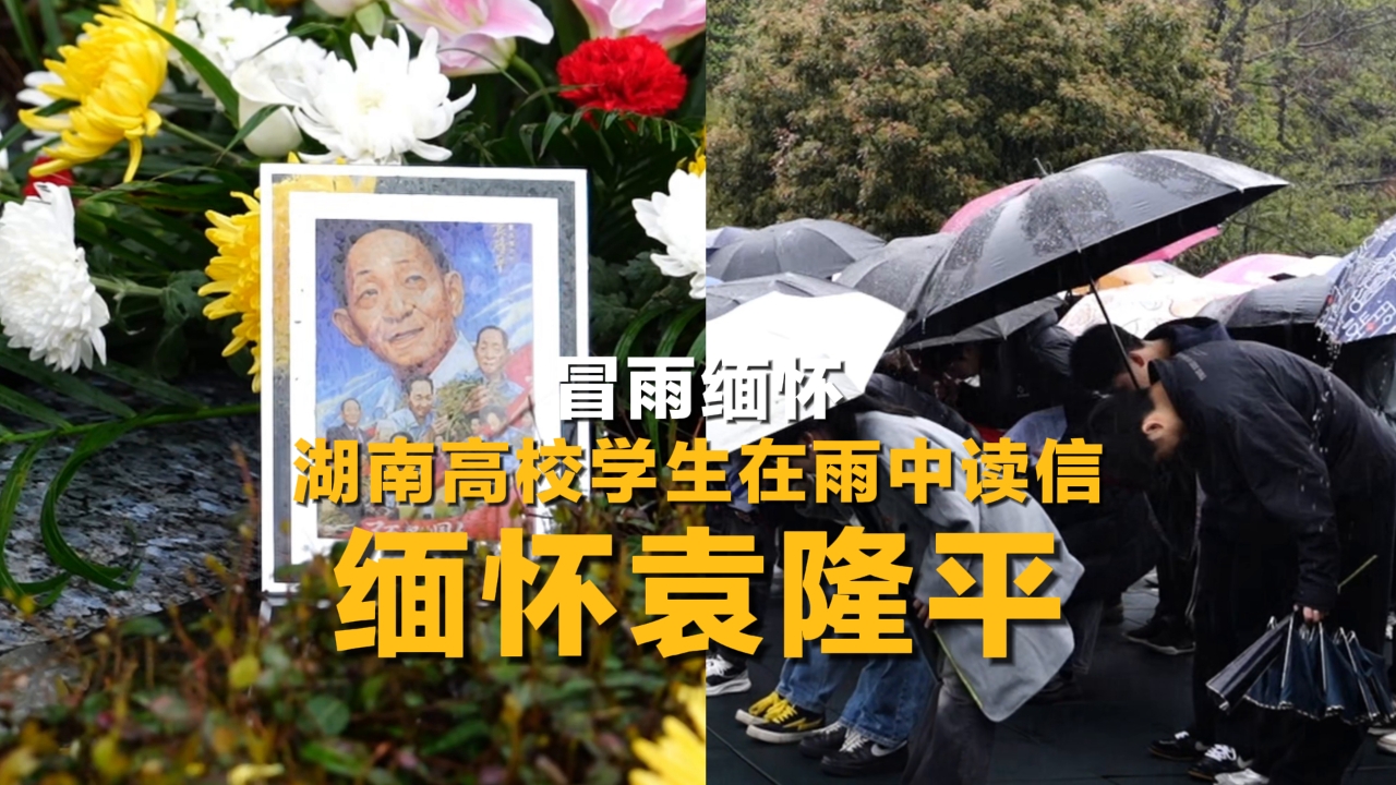 冒雨缅怀 湖南高校学生在雨中读信缅怀袁隆平