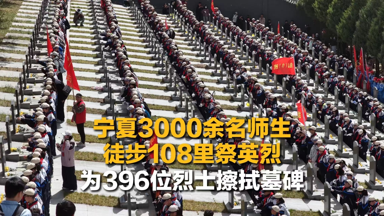 宁夏3000余名师生徒步108里祭英烈,为396位烈士擦拭墓碑