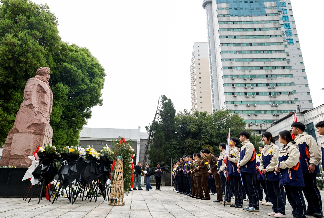 江西南昌:青年们在方志敏铜像前齐声诵读《可爱的中国》