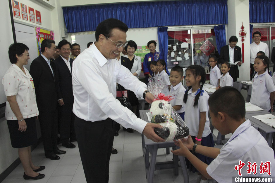 李克强参观泰国清迈华立学校 赠送学生熊猫玩偶
