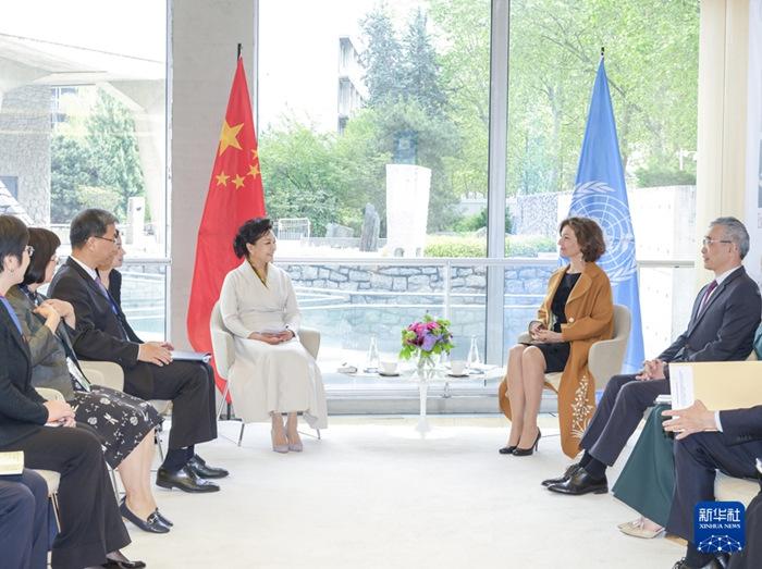 彭丽媛同匈牙利总统舒尤克夫人纳吉参观布达王宫并茶叙