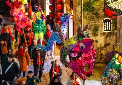 江苏徐州:乡村揉铁花闹元宵 村民自办村晚过佳节