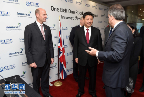 10月22日,国家主席习近平在伦敦参观国际移动卫星公司。新华社记者 张铎 摄