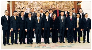 中宣部长刘云山等与澳门新闻界高层访问团合影。(图片来源:澳门日报)