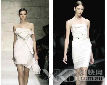 尽管皱褶一直是重要的设计手法,但是从未像本季这样来势汹汹,铺天盖地。无论是奢华的晚礼服还是休闲的度假小短裙,无论是黑白主打的OL装还是粉色系的浪漫春夏裙装,甚至连帽子、鞋子、包包,全部“皱”起来。在各大秀场、发布会或者颁奖礼上,女星们穿着皱褶礼服亮相也常常能博得称赞。皱褶裙的经典款式实在太多了,很多人恐怕都还记得《LOST》的主演伊万杰琳•莉莉走红地毯所穿的那袭纤长飘逸的Versace 紫色晚礼服。优雅的胸前细折盘花,颇具中国式如意结的美感,尽管万杰琳•莉莉那天一件首饰都没戴,依然博得了满堂喝彩。