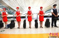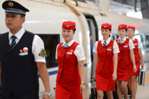 8月26日上午9时50分,武汉火车站,由武汉开往深圳的1013次动车组服务员全部换上宝珠红工作装,新装较以前的工作装显得宽松得体,便于工作。色彩鲜艳、高贵优雅的新装成为武广高铁线路上一靓丽的风景。图片来源:东方IC 版权作品 请勿转载