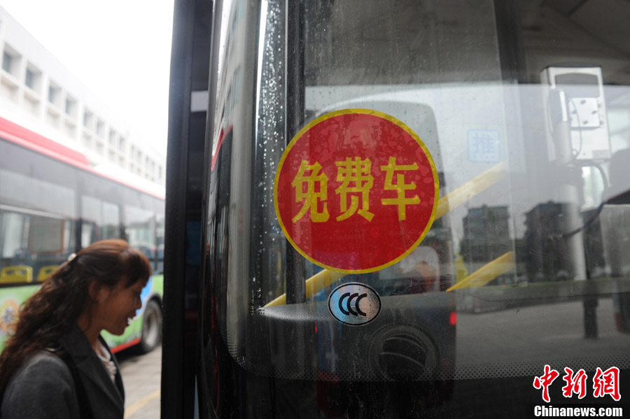 10月10日,成都市民正准备乘坐新开设的免费公交车。为缓解城市交通压力,鼓励民众选择公共交通出行,成都从10月10日起至2013年6月30日,对二、三环限行区域内的44条公交线路实行免费乘坐措施。由于部分线路将在本月底前陆续开行,10日起有33条线路率先免费。这是成都市公交首次进行大规模的免费乘坐。中新社发 张浪 摄