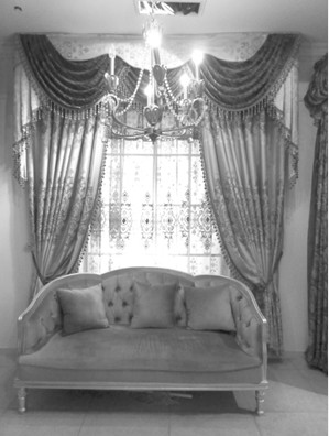 浅色绣帷提花绸缎窗帘搭配宫廷式流苏,往往能在空间中营造出典雅气息。此款欧式窗帘被设计成水波效果,看似随意实则颇用心思。大气沉稳的设计,以及面料的闪光感具有华丽的装饰效果。暗红的大花、流苏等小小装饰物,使整幅窗帘散发出春日温馨的气息。(记者 张莉)