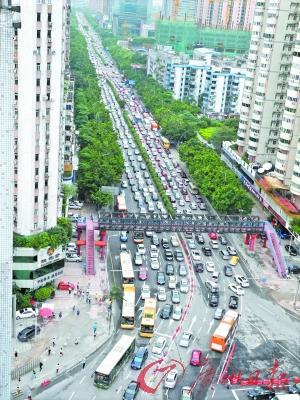 受到道路施工影响,上下班时间,天河东、天河北瞬间变成“停车场”。