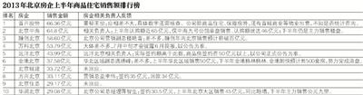 2013年上半年,北京本土国企首开稳居首座、老牌销售明星中海、万科等业绩稳中有升,保利大幅掉队,最大黑马当属融创,凭借西山壹号院热销,融创首次跃升第三。