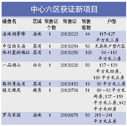 尽管外围仍是楼市供应的绝对主力,但根据搜房网的统计,6月广州市中心六区获得的新批预售证量也有突破,总货量共364套,占全市总量的8.3%,环比5月(153套)大涨137%,除了海珠、荔湾和白云区外,越秀区本月也有所“斩获”,由骏文雅苑贡献了51套。荔湾则以169套成为市区供货冠军,保利塞纳维拉、中信西关海两个项目获证。值得注意的是,天河以及黄埔都无货供应,其中黄埔表现极为冷淡,今年至今仍然是零供货。
