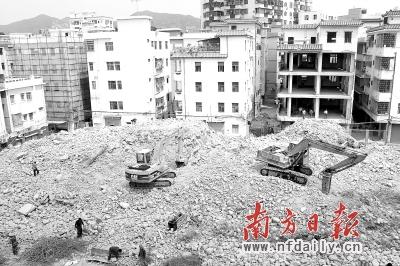 龙岗对违建保持高压态势。图为拆除违建现场。 周游 摄