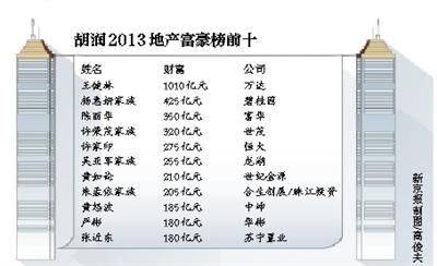 在此前公布的胡润百富榜中,有235名地产富豪入围榜单(百富榜总人数是1000人),较去年增长了10%。地产业重新成为上榜人数比例最高的行业,即每四位富豪中,就有一位是地产富豪。而地产富豪的财富总额为7861亿元,占百富榜财富总额的28%。